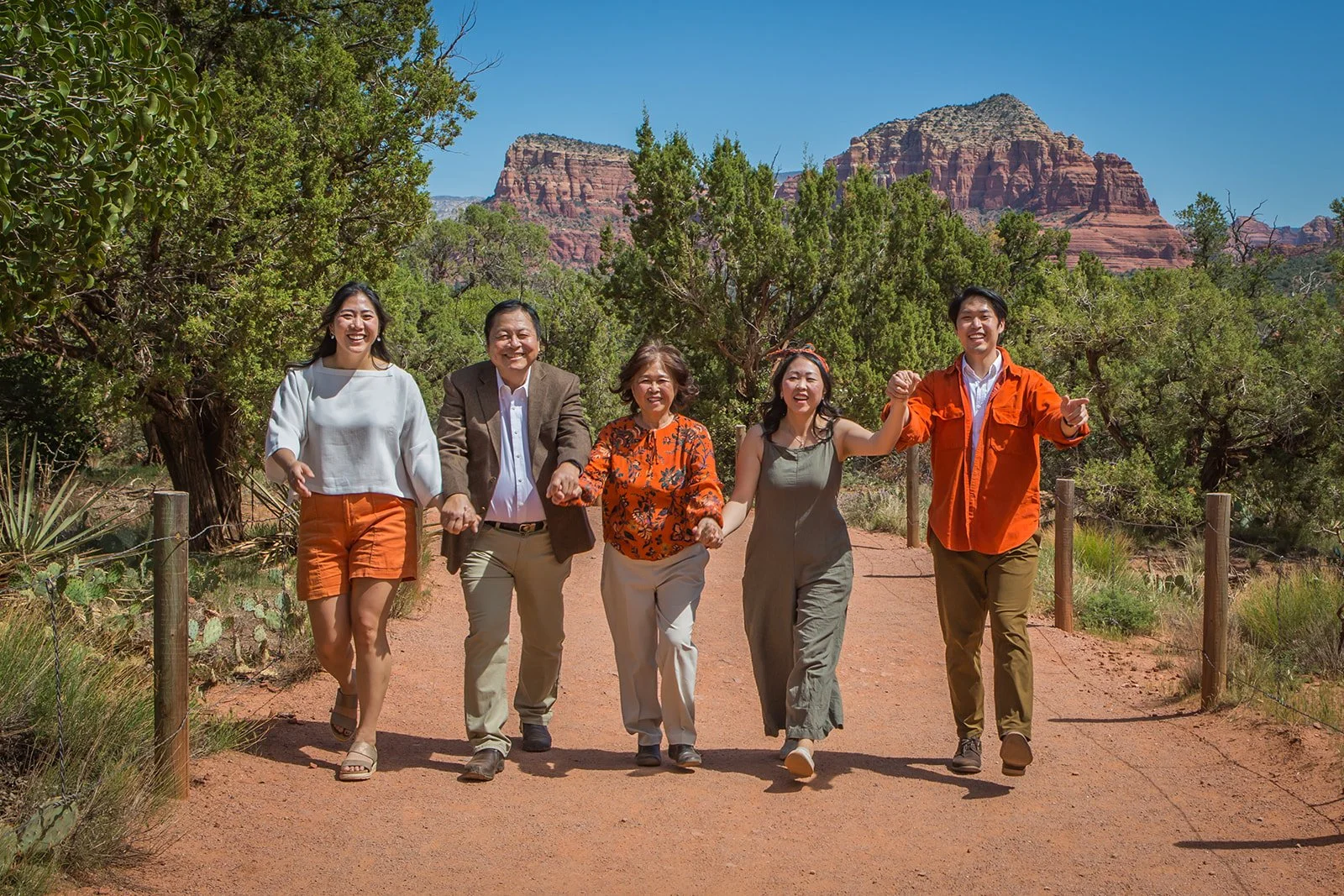 Consider working with a select color pallet that limits the number of tones everyone will be wearing in the photos. Color classics that always work well and most have in their closet already are white, beige, gray or black. Blue is wonderful too, but narrow down your hue if this is a group photo. Dusty rose is also great and is complimentary with light blues. Warm yellows and gold are inviting to the eye, as are the many shades of green. I would not recommend overdoing greens for an outside photo shoot, as you want to be sure to stand out from the scenery if the background will be heavy with green tones.