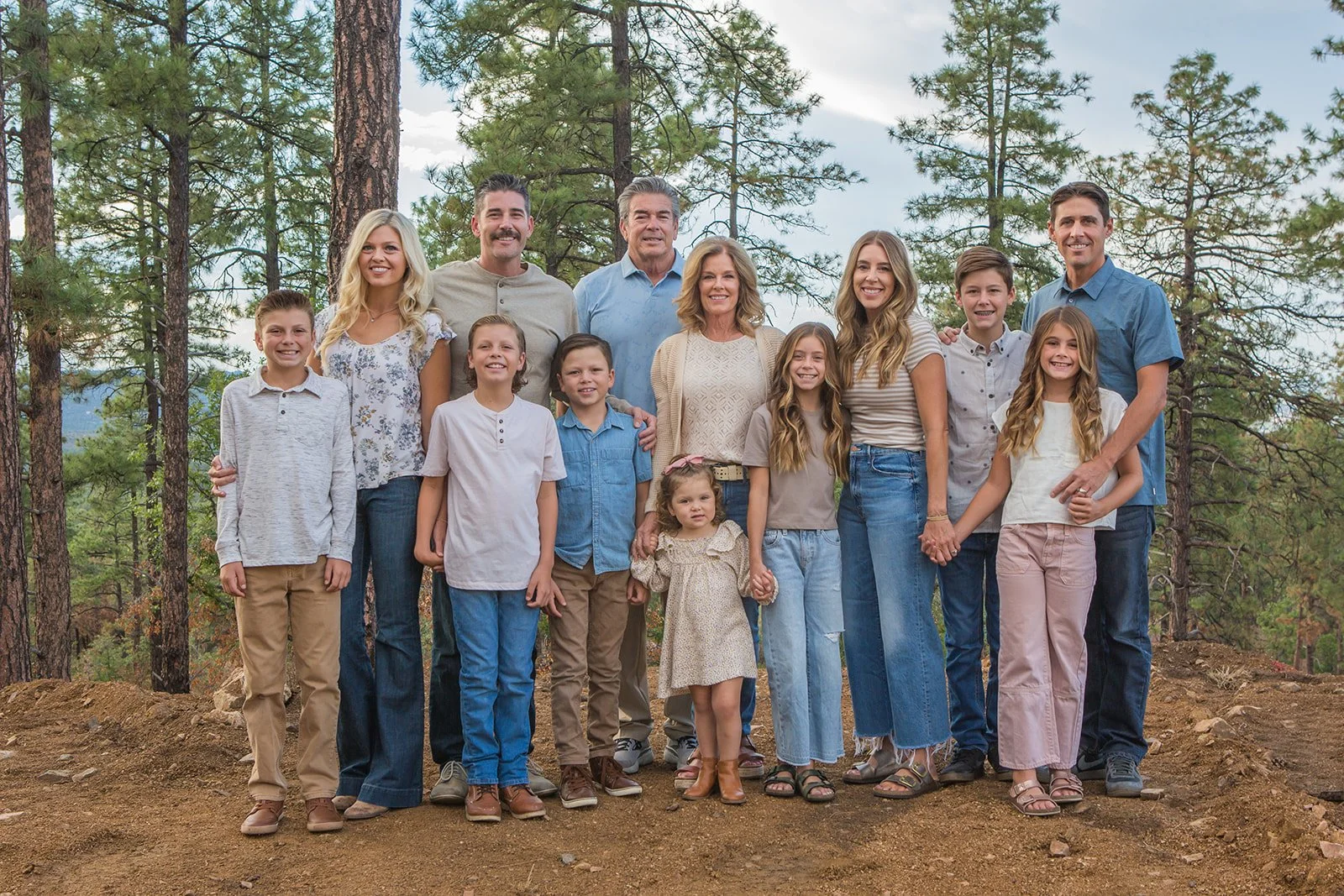 When multiple people are coming together for a group photo, coordinating colors will create a cohesive and visually pleasing image. Choose colors that complement each other and avoid clashing hues. For group photos (especially large groups) I recommend sticking with solid colors and avoiding stripes, plaid, large print or bold patterns. Having multiple people in various print patterns in a photo feels chaotic and distracting to the eye. This is by far the most important piece of advice I can offer my clients as we plan a group or family photo session!